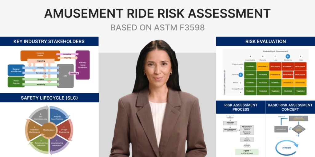 Get a concise and engaging introduction to the topic Amusement Ride Risk Assessment in this free 10-Min video from ADVANTIS Academy. Based on the newly published ASTM F3598 standard, this short course explains why Risk Assessments matter, how risks are identified and reduced, and who is involved throughout the Safety Lifecycle of an Amusement Ride or Device. In approx. 10 minutes, you’ll gain practical insights into Hazard Identification, Risk Estimation, Risk Evaluation, and real‑world Risk Reduction, providing you the perfect foundation for our offering on Training Courses and Certification Programs.