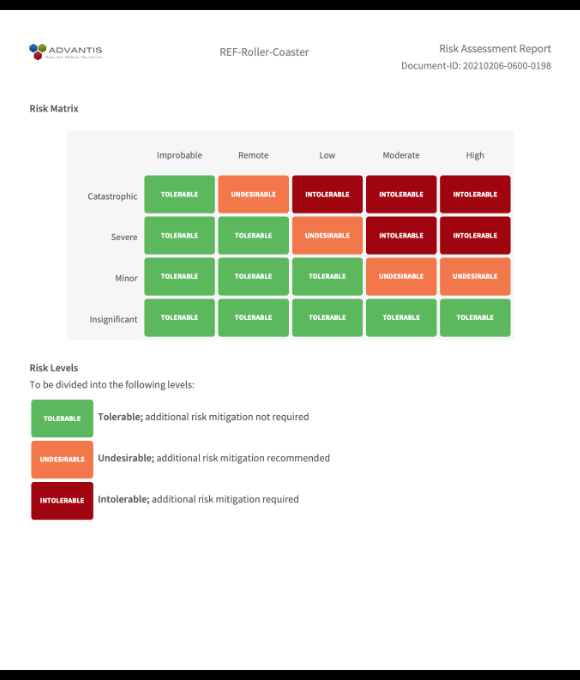 • The Transferred Risk Report contains information that is out of scope. E.g. by a DRA the fence. So the designer could forward this report to the customer (the park). In case the customer is using Advantis also, this report could be transferred to the customer within Advantis.